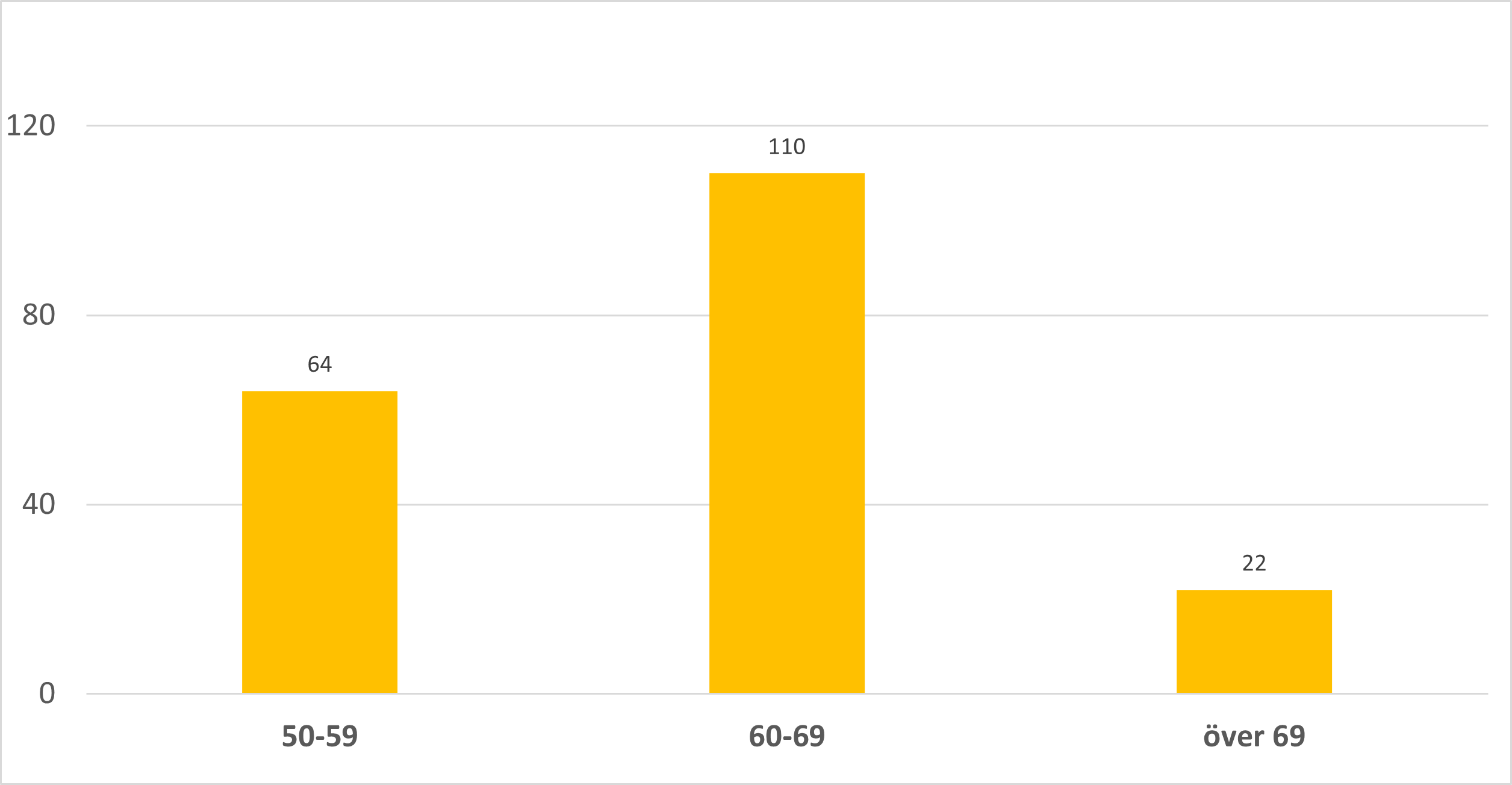 Diagrammet nedan visar antalet godkända revisorer vid utgången av år 2024 fördelat på ålder.